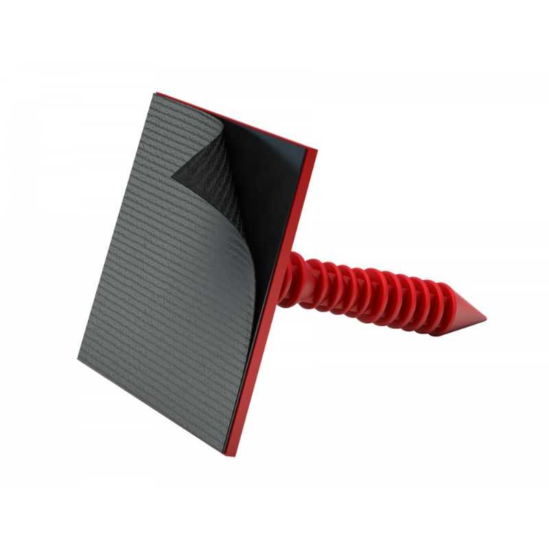 Крепеж ТЕХНОНИКОЛЬ №01 и №02 изготавливается из полиэтилена низкого давления и представляет собой шип с зубцами для фиксации в материале и плоскую площадку с приклеивающим слоем, который защищен легкосъемной силиконизированной пленкой.